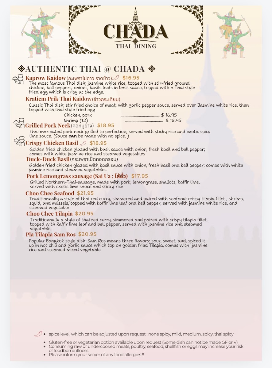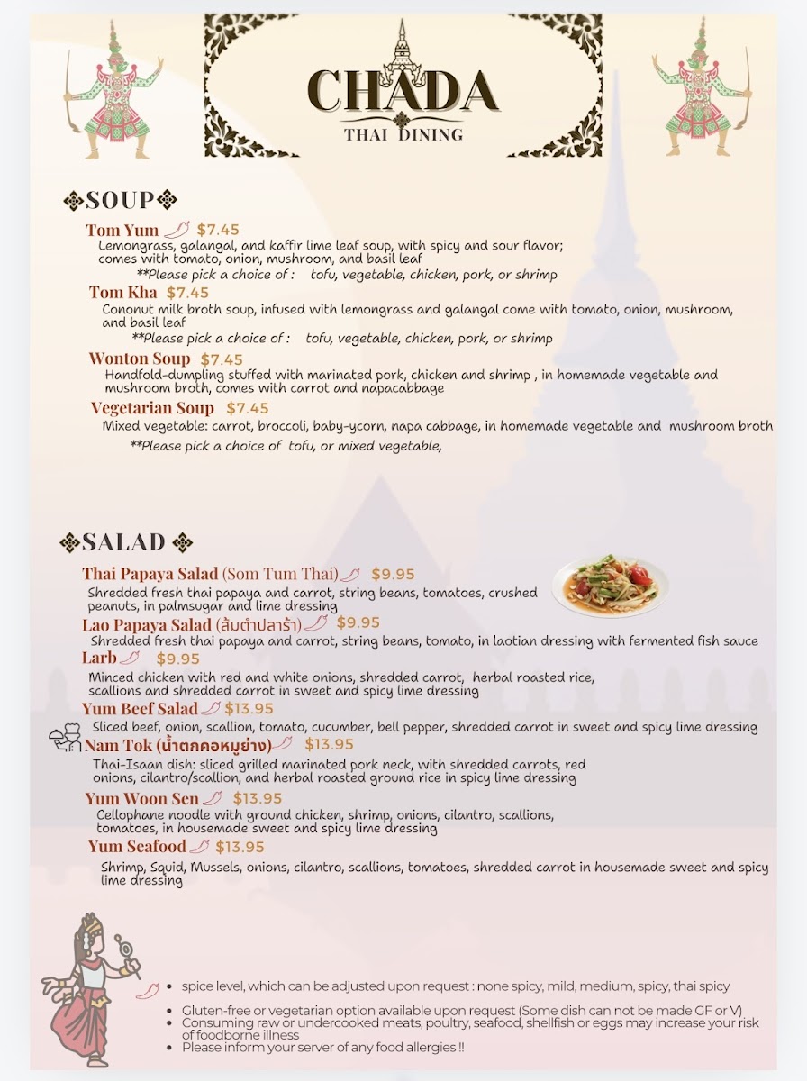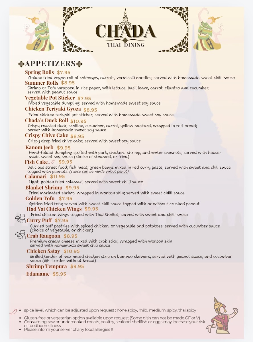 Customers appreciate the welcoming service from the Thai owners, enhancing the dining experience with their warm hospitality. The ambiance, adorned with charming local shops, adds to the allure, making it ideal for both dining in and takeout. Highly recommended by guests, Chada Thai Dining promises a memorable culinary voyage that delights the senses.